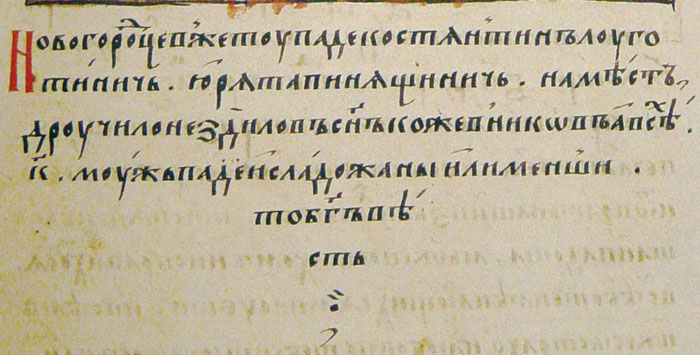 Из новгородцев же были убиты Константин Луготинич, Юрата Пиняшинич, Намест, Дручило Нездилов, сын Кожевников, и всего 20 мужей было убито вместе с ладожанами, а может быть, и меньше, то Бог знает. |