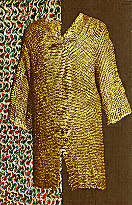 Изготовление кольчуг требовало большого умения и точности. Сначала способом протяжки делали проволоку, ее наматывали на круглый штифт — оправу, чтобы получилась длинная спираль, которую разрубали на кольца одинакового диаметра. Половину колец сваривали, другую плющили и соединяли между собой особым способом. На изготовление одной кольчуги обычно уходило около 600 метров железной проволоки-спирали. Вес кольчуги равнялся примерно 6,5 кг.
