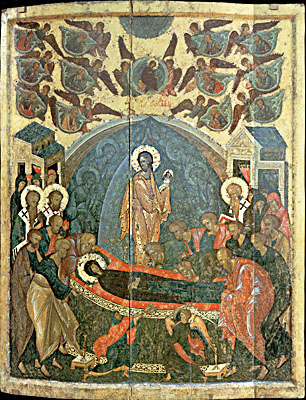 В настоящее время икона Успения конца XV в. находится в Государственной Третьяковской галерее в г. Москве.