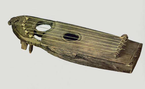 Cтаринный щипковый инструмент. Были популярны в Древней Руси. Несколько экземпляров гуслей (пяти-, шести- и девятиструнных) найдено в Новгороде. Размеры инструментов различны: от 36 до 85 см. Самый древний инструмент – пятиструнные гусли — обнаружен в Новгороде в слоях середины XI в., на нем вырезано имя гусляра — Словиш.