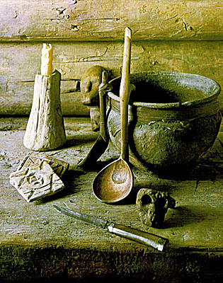 Дерево было основным поделочным материалом Древней Руси. Из него изготавливались необходимые в хозяйстве предметы — бочки, ложки, миски, корыта и т.д. Дерево легко поддается обработке, поэтому деревянные изделия часто украшались резным орнаментом.
