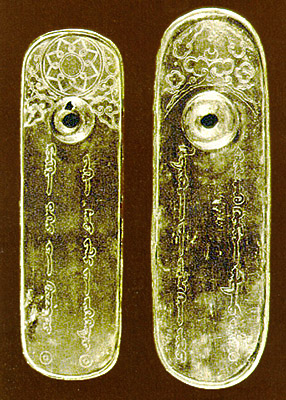 Серебряная с позолотой пластинка, которая в XIII–XV вв. выдавалась монголо-татарскими ханами военачальникам в качестве верительных грамот.