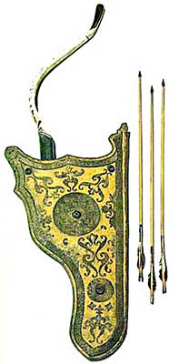 Лук — ручное оружие для метания стрел. Использовалось как пешими, так и конными воинами. Лук бывает простой и сложный. Сложный лук представляет собой деревянную основу, усиленную с внешней стороны сухожилиями, с внутренней — роговыми пластинами, все части лука склеивались. Тетиву для лука свивали из сухожилий крупных животных, узкого и сыромятного ремня, волос, растительных волокон, она натягивалась перед боем. Дальность эффективной стрельбы составляла 200 м.
