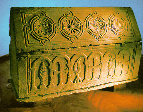 На иллюстрации представлен саркофаг X в. В нем по преданию была захоронена княгиня Ольга.