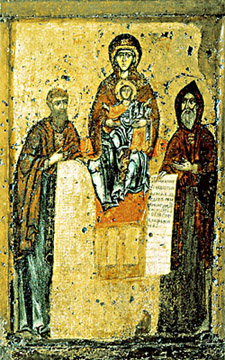 Икона Божией Матери «Свенская», с преподобными Антонием и Феодосием Печерскими. XIII в.