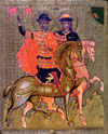 Икона «Святые Борис и Глеб на конях». Кон. XIV в.