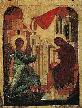 Название: Икона «Благовещение Пресвятой Богородицы» из Успенского собора г. Владимира. А. Рублев, Д. Черный. 1408 г.