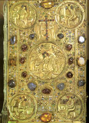 На иллюстрации — оклад Евангелия. 1557 год. Выполнен мастерами Оружейной палаты по распоряжению Ивана Грозного.