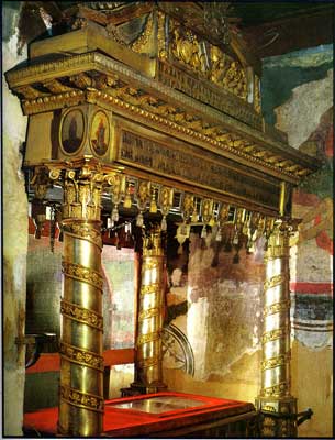 На иллюстрации — рака патриарха Гермогена, находящаяся в Успенском соборе Московского Кремля. Бронзовый «шатер» ажурного литья выполнен в 1627 г. котельных дел мастером Димитрием Сверчковым.